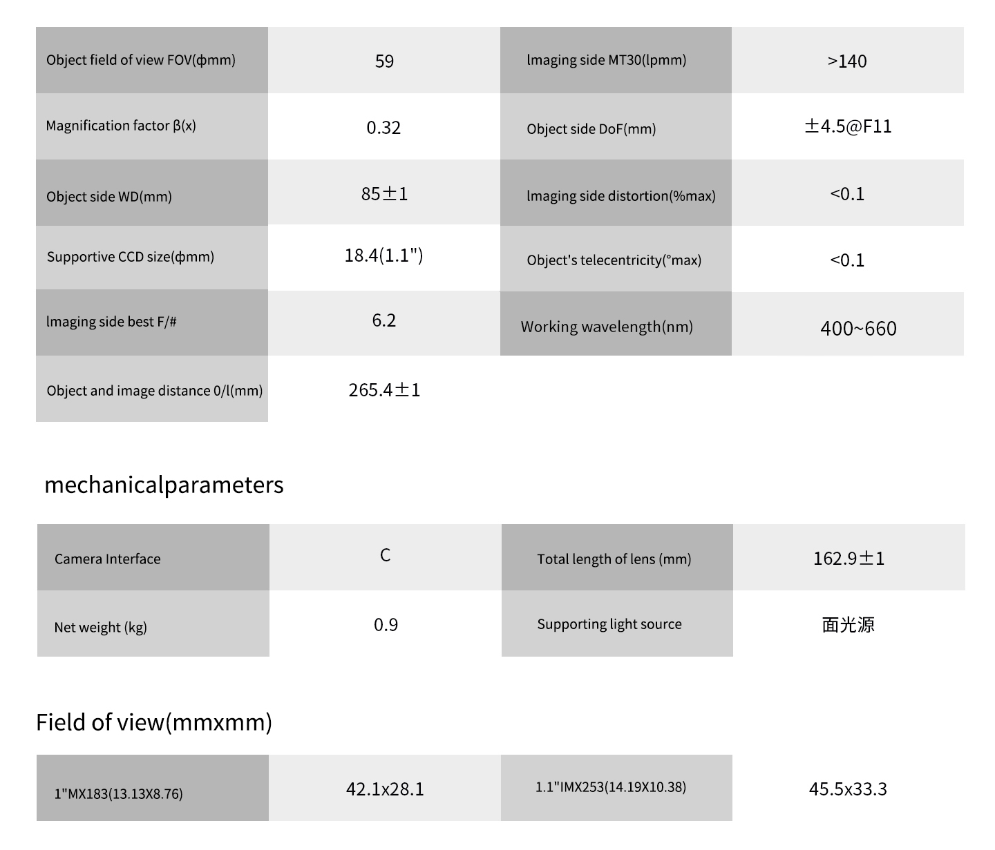 ·Dual telecentric design